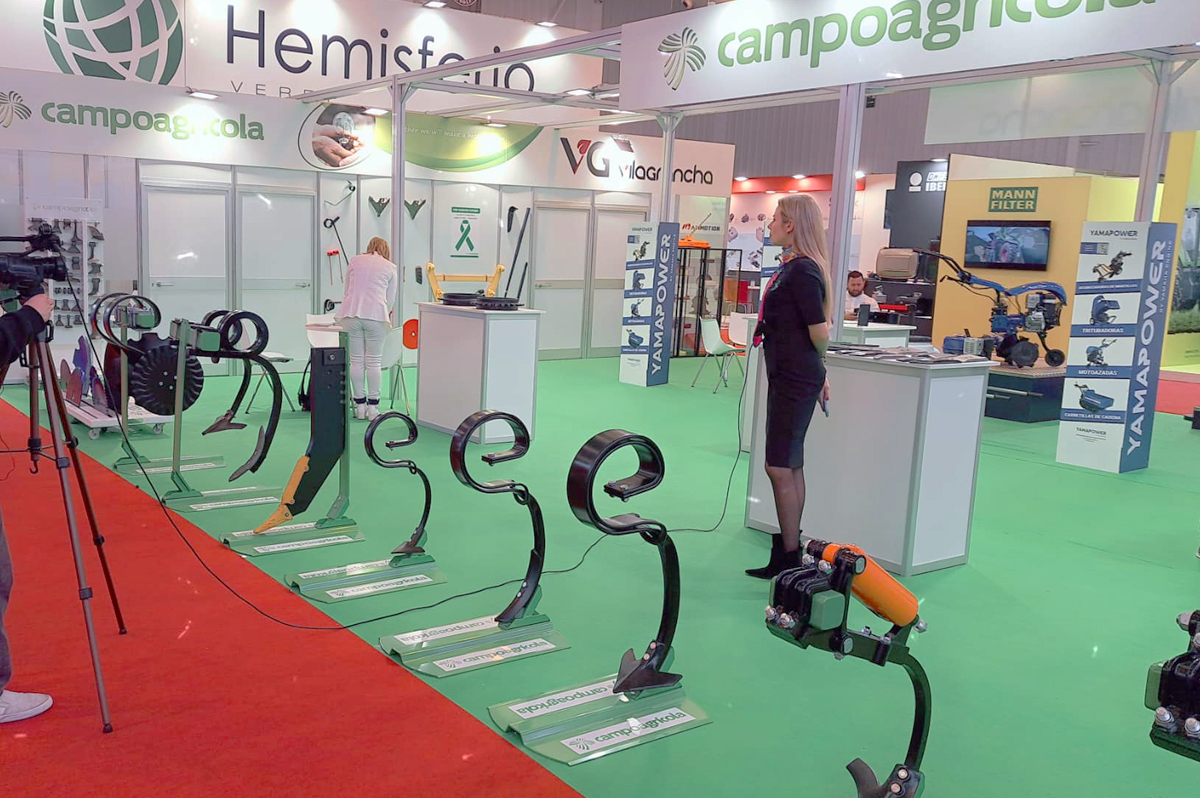 Campoagrícola ha presentado en FIMA, sus últimos modelos en rejas con plaqueta de Carburo, los retenedores para muelles de rastra y muelles tipo bastón y su última patente, una reja que permite montar deflectores en brazos que no tienen agujeros para los deflectores.